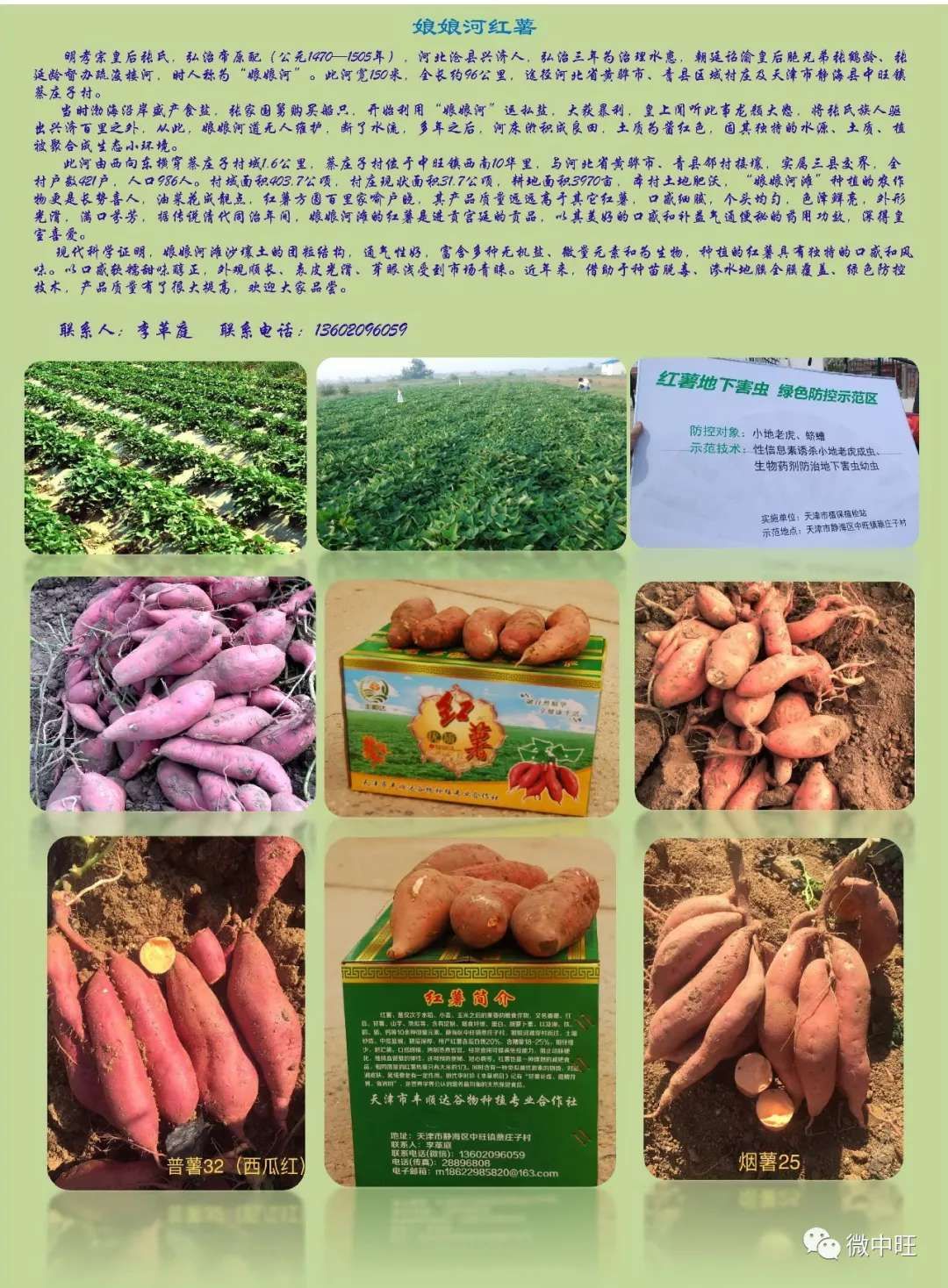 又到红薯收货季节了!静海区中旺镇蔡庄子村“娘娘河滩”红薯方圆百里家喻户晓,其产品质量远远高于其他红薯,口感细腻,个头均匀,色泽鲜亮,外形光滑,满口芬芳。欢迎各方朋友前来品尝购买。<br><p style="margin-right: 0px; margin-bottom: 0px; margin-left: 0px; padding: 0px; max-width: 100%; clear: both; min-height: 1em; color: rgb(51, 51, 51); font-family: 微软雅黑; letter-spacing: 0.544px; text-align: justify; overflow-wrap: break-word !important;">订购热线13602096059 </p><p style="margin-right: 0px; margin-bottom: 0px; margin-left: 0px; padding: 0px; max-width: 100%; clear: both; min-height: 1em; color: rgb(51, 51, 51); font-family: 微软雅黑; letter-spacing: 0.544px; text-align: justify; overflow-wrap: break-word !important;">快来订购吧 !!</p>