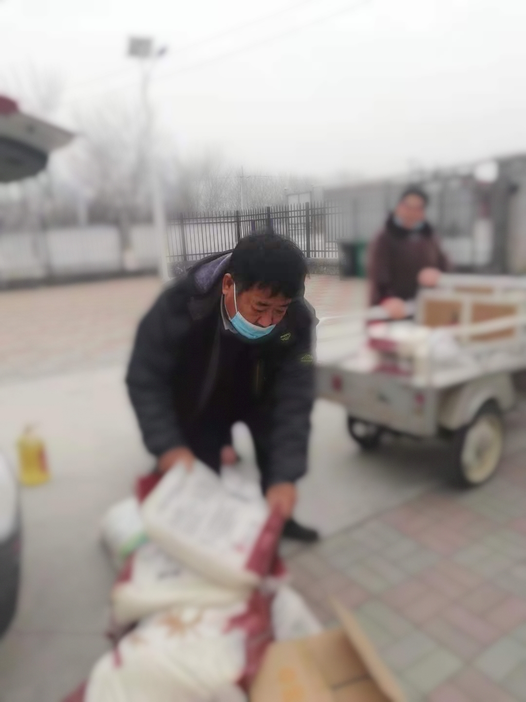 #益农社# #每天签到# #志愿服务#村书记为村民搬福利产品。